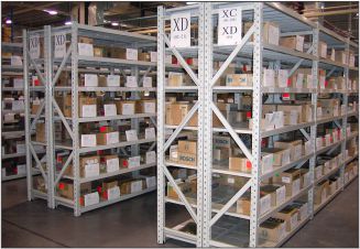此庫房國內某能源行業配件庫房之中型鋼層板貨架。七層,排放整齊,外形美觀,庫放存放量提高了70%。